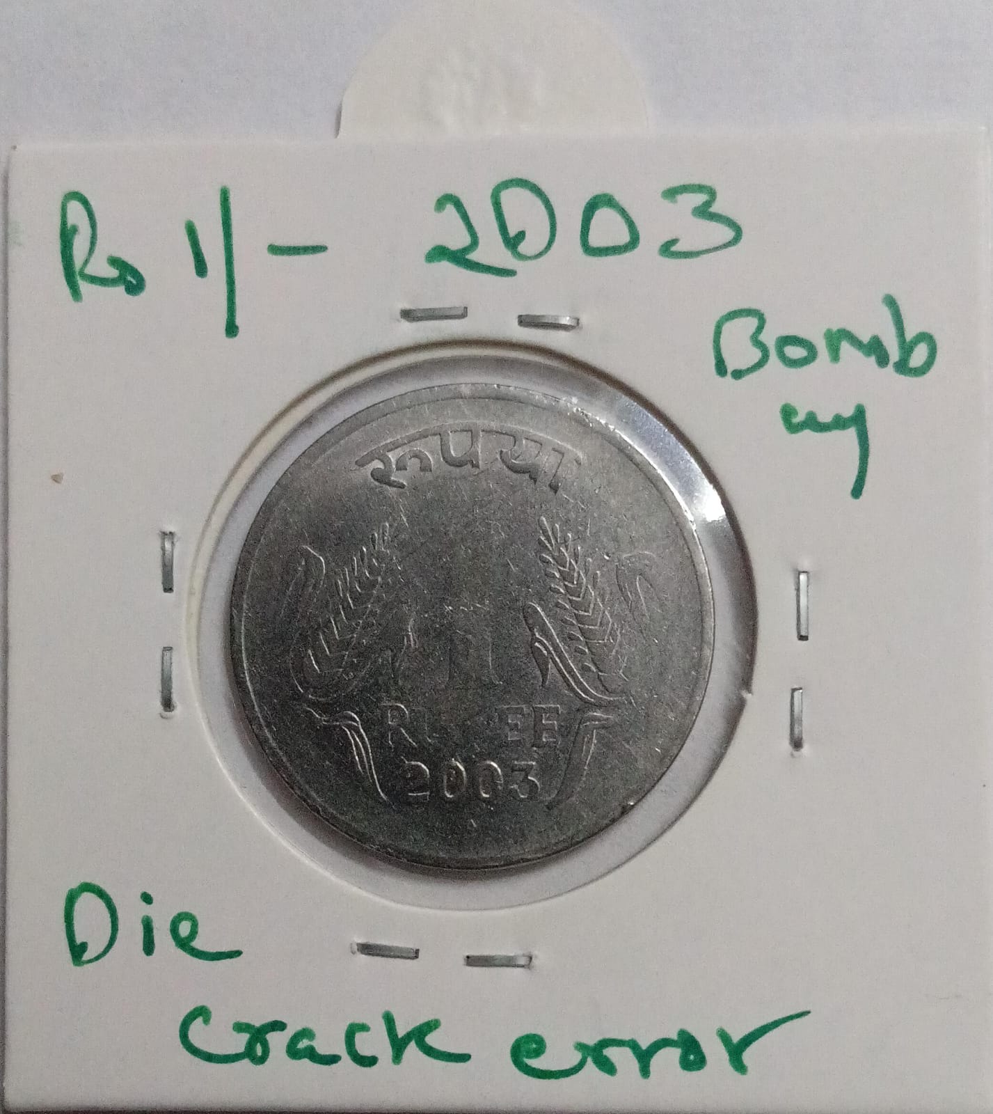 1 RUPEE 2003 BOMBAY MINT DIECRACK ERROR COIN USED