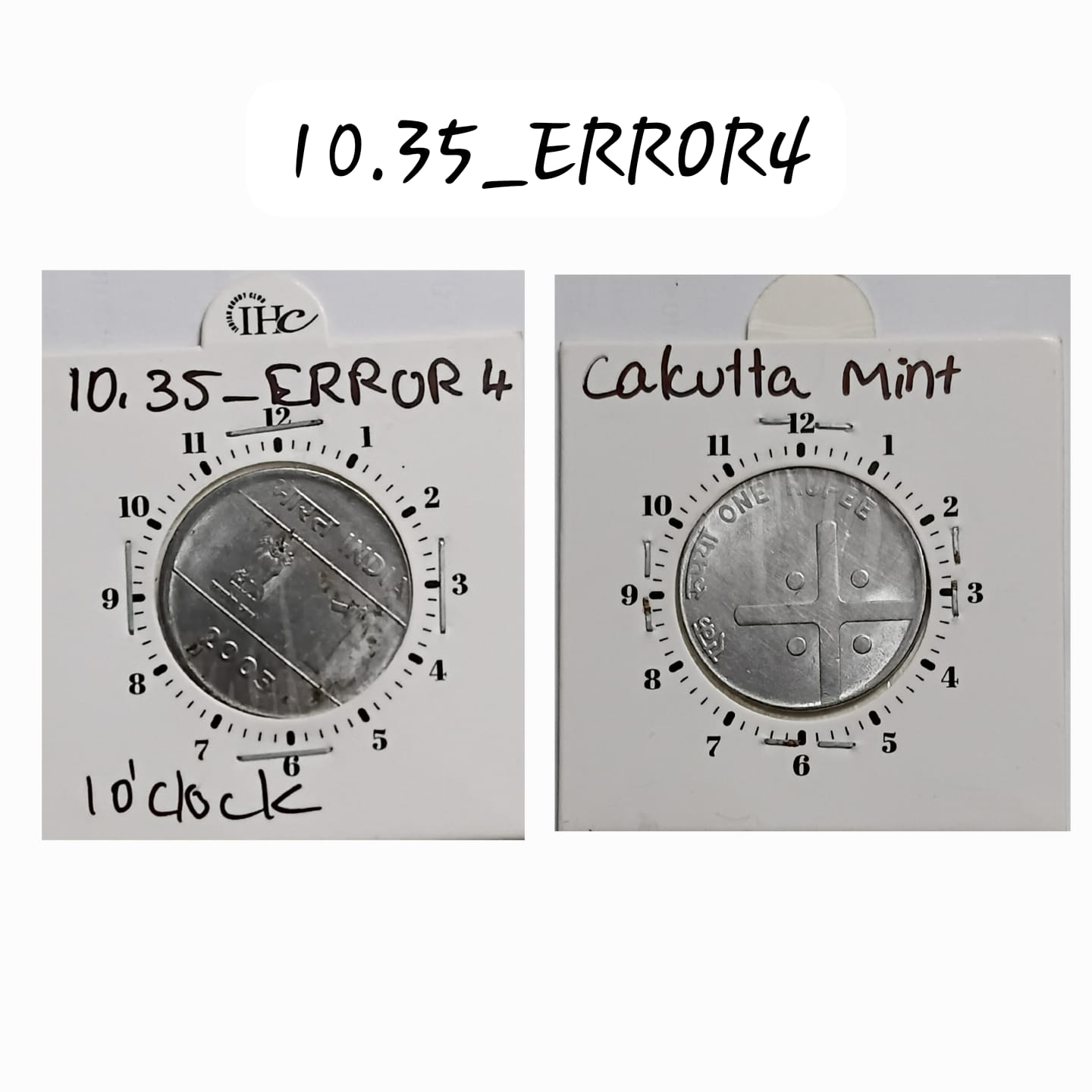 1 Rupee 2005 Calcutta Mint 1.00 O’clock Rotation Error Coin Used. Collectible numismatic item. Stock image shown.