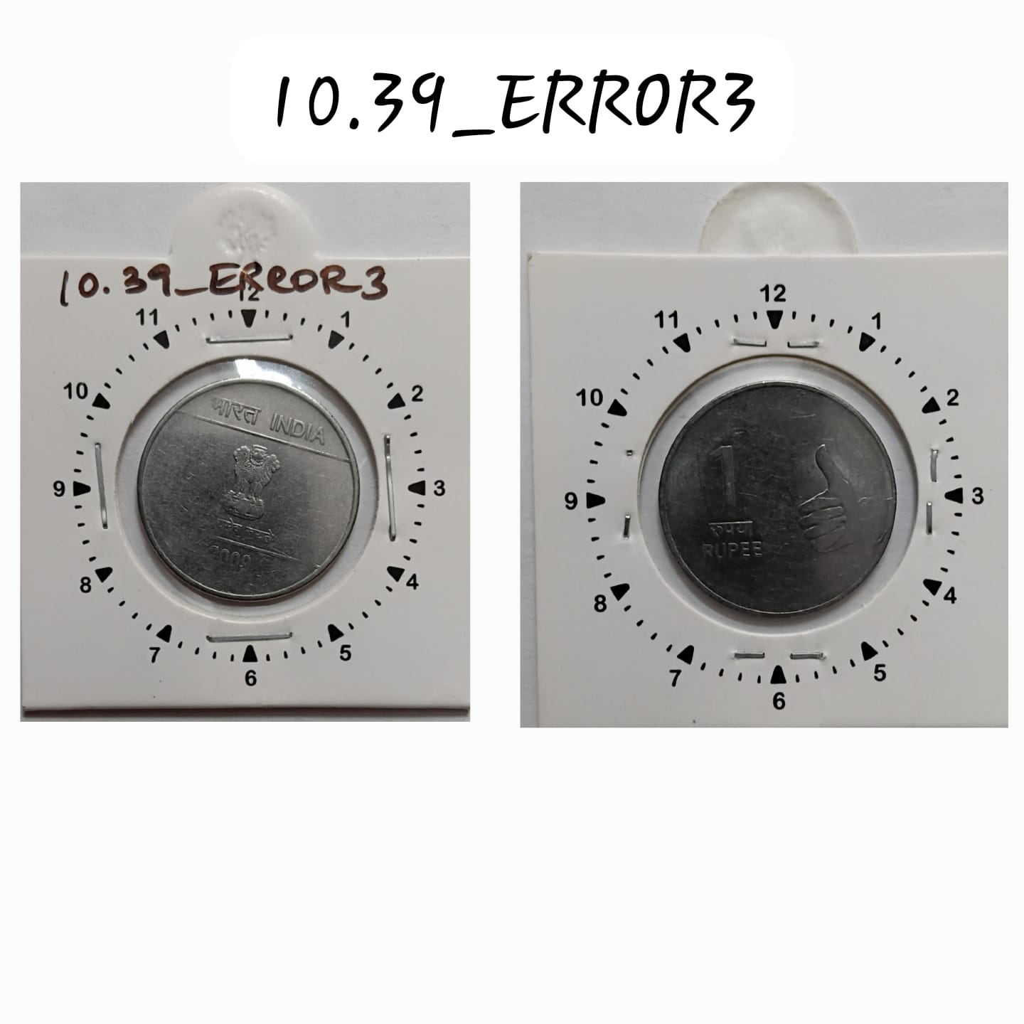1 RUPEE 2009 CALCUTTA MINT 1 O’CLOCK ROTATION ERROR COIN USED