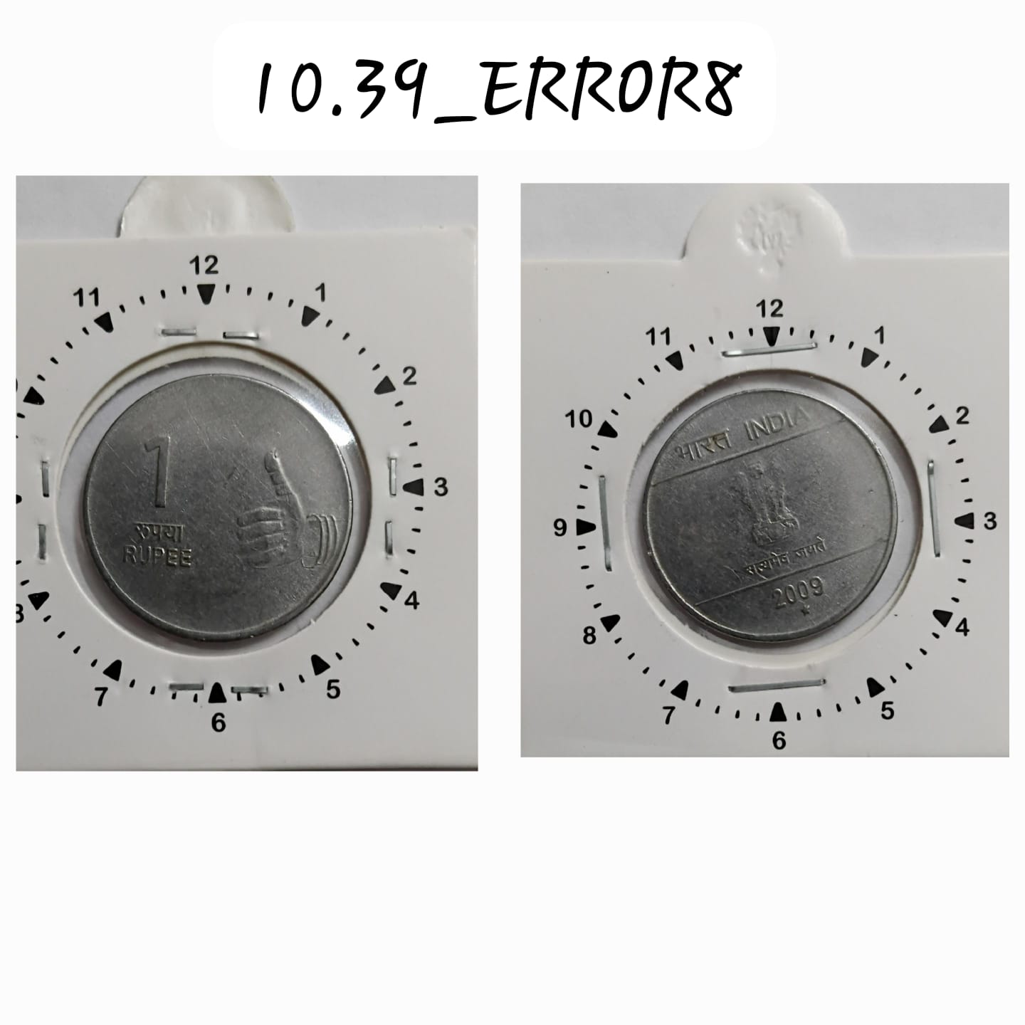 1 Rupee 2009 Hyderabad Mint 11.5 O’clock Rotation Error Coin Used. Collectible numismatic item. Stock image shown.