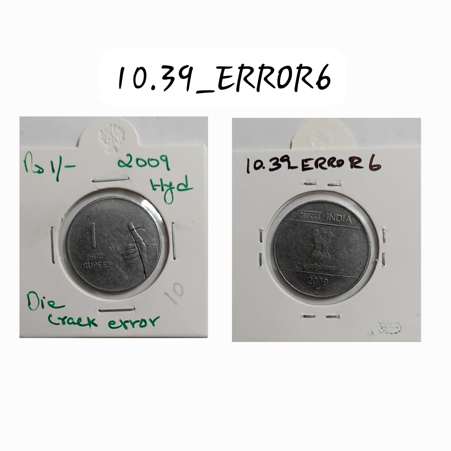 1 RUPEE 2009 HYDERABAD MINT DIE CRACK ERROR COIN USED