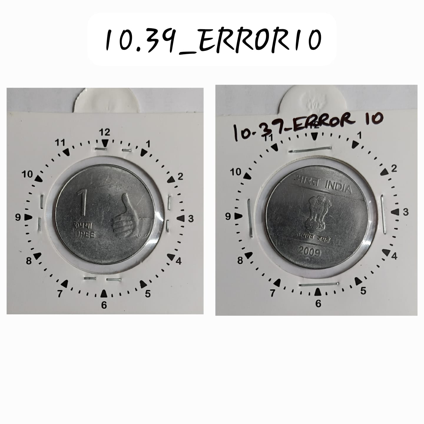 1 RUPEE 2009 NOIDA MINT 1 O’CLOCK ROTATION ERROR COIN UNC