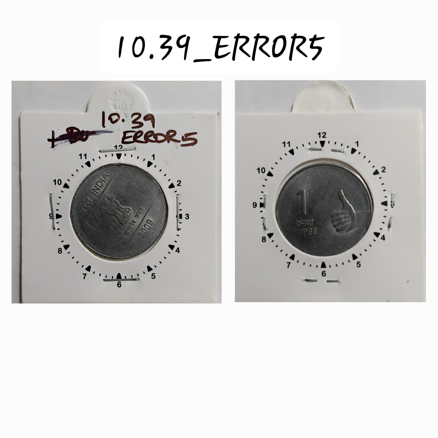 1 RUPEE 2009 NOIDA MINT 10 O’CLOCK ROTATION ERROR COIN USED