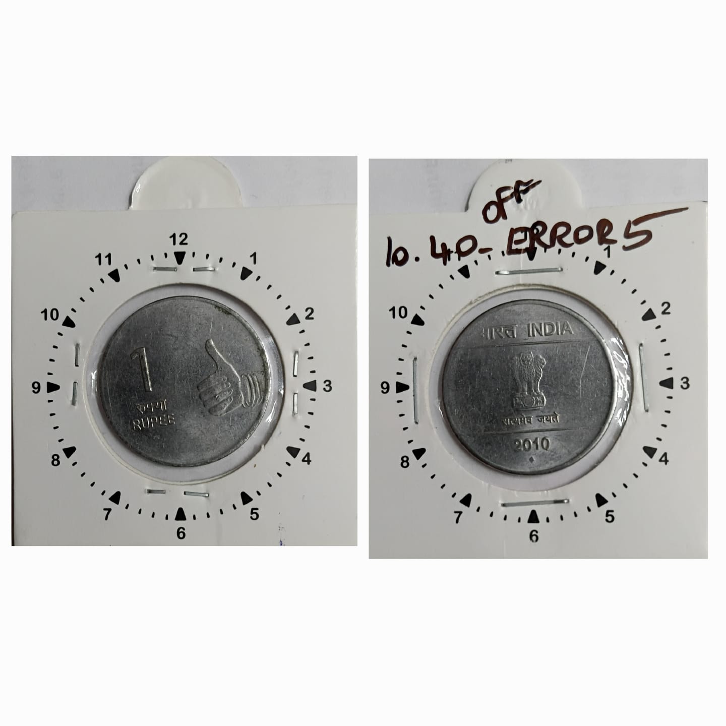 1 RUPEE 2010 BOMBAY MINT OFF CENTRE ERROR COIN USED