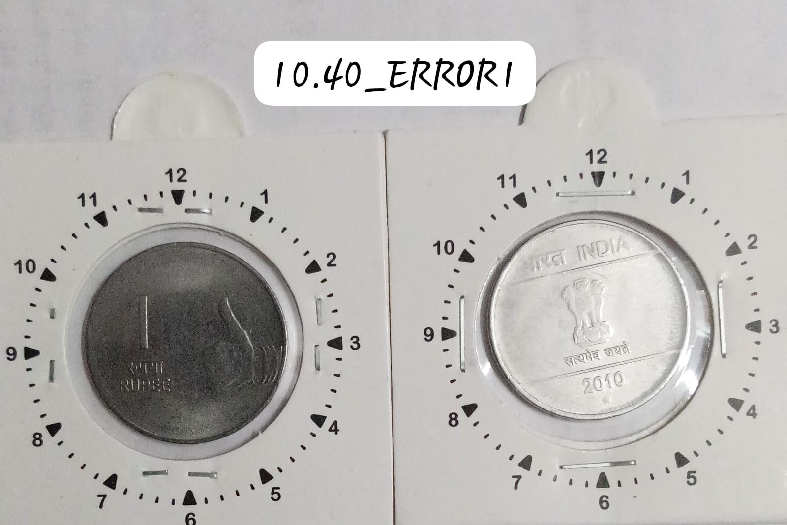 1 Rupee 2010 Hyderabad Mint 11 O’clock Rotation Error Coin UNC. Collectible numismatic item. Stock image shown.