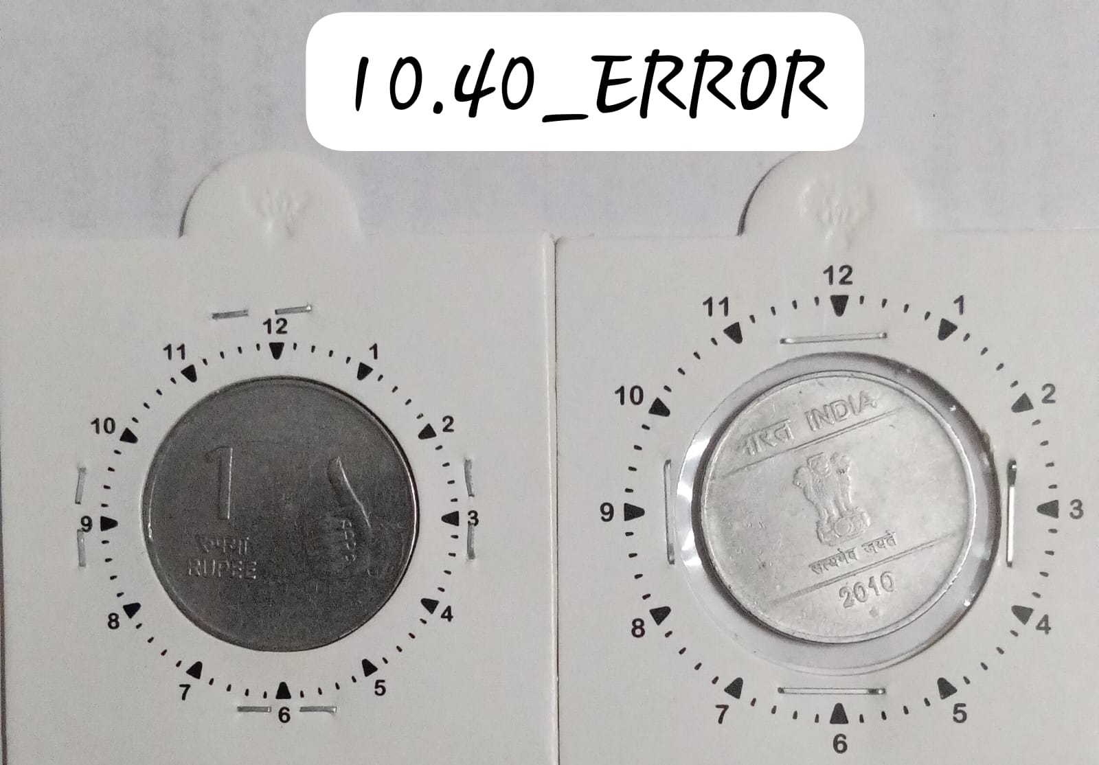 1 RUPEE 2010 HYDERABAD MINT 11 O’CLOCK ROTATION ERROR COIN USED