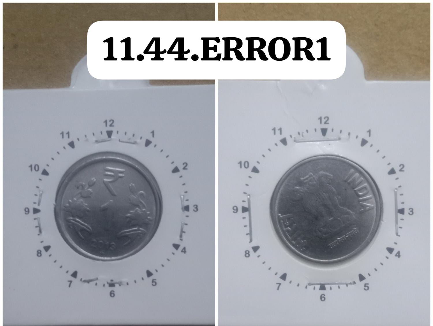 1 RUPEE 2013 HYDERABAD MINT 11’O CLOCK ROTATION ERROR COIN USED