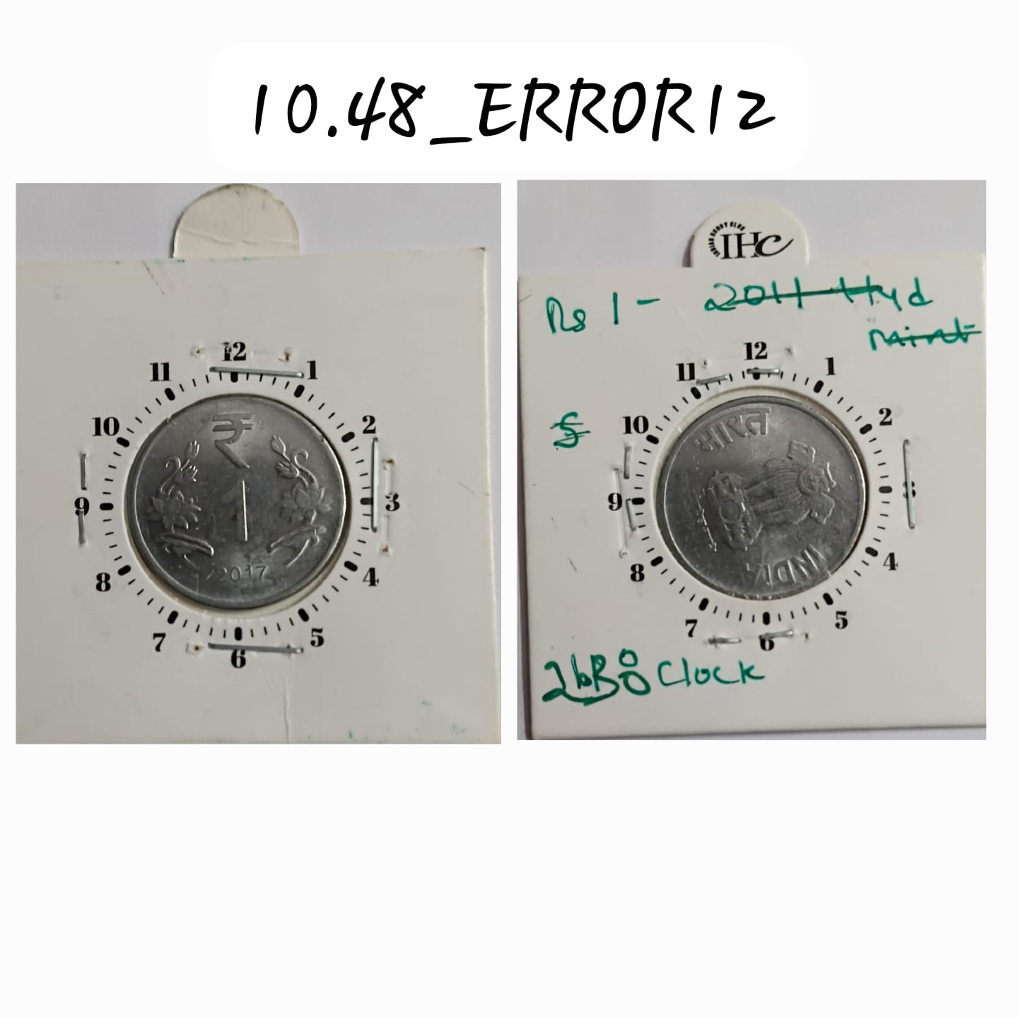 1 RUPEE 2017 NOIDA MINT 2.30 ROTATION ERROR COIN USED