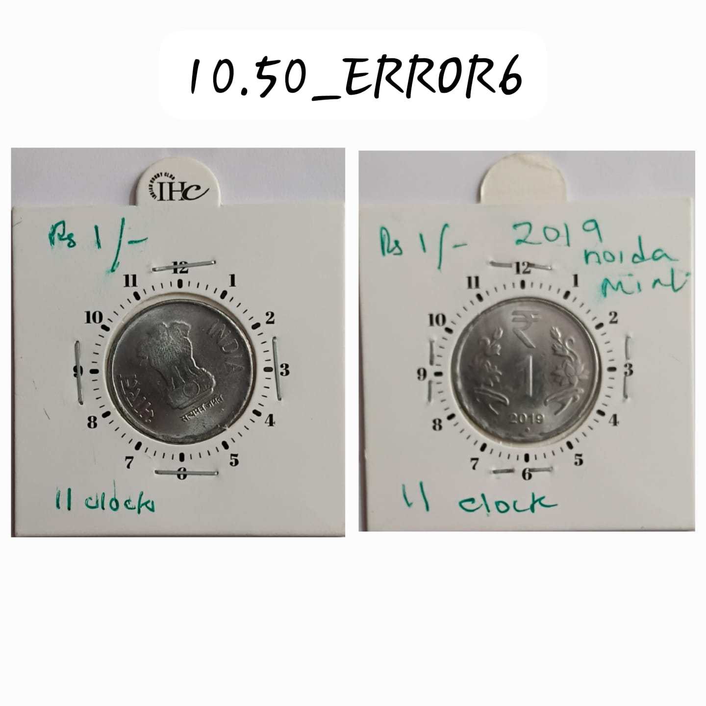 1 RUPEE 2019 NOIDA MINT 11 O’CLOCK ROTATION ERROR COIN UNC