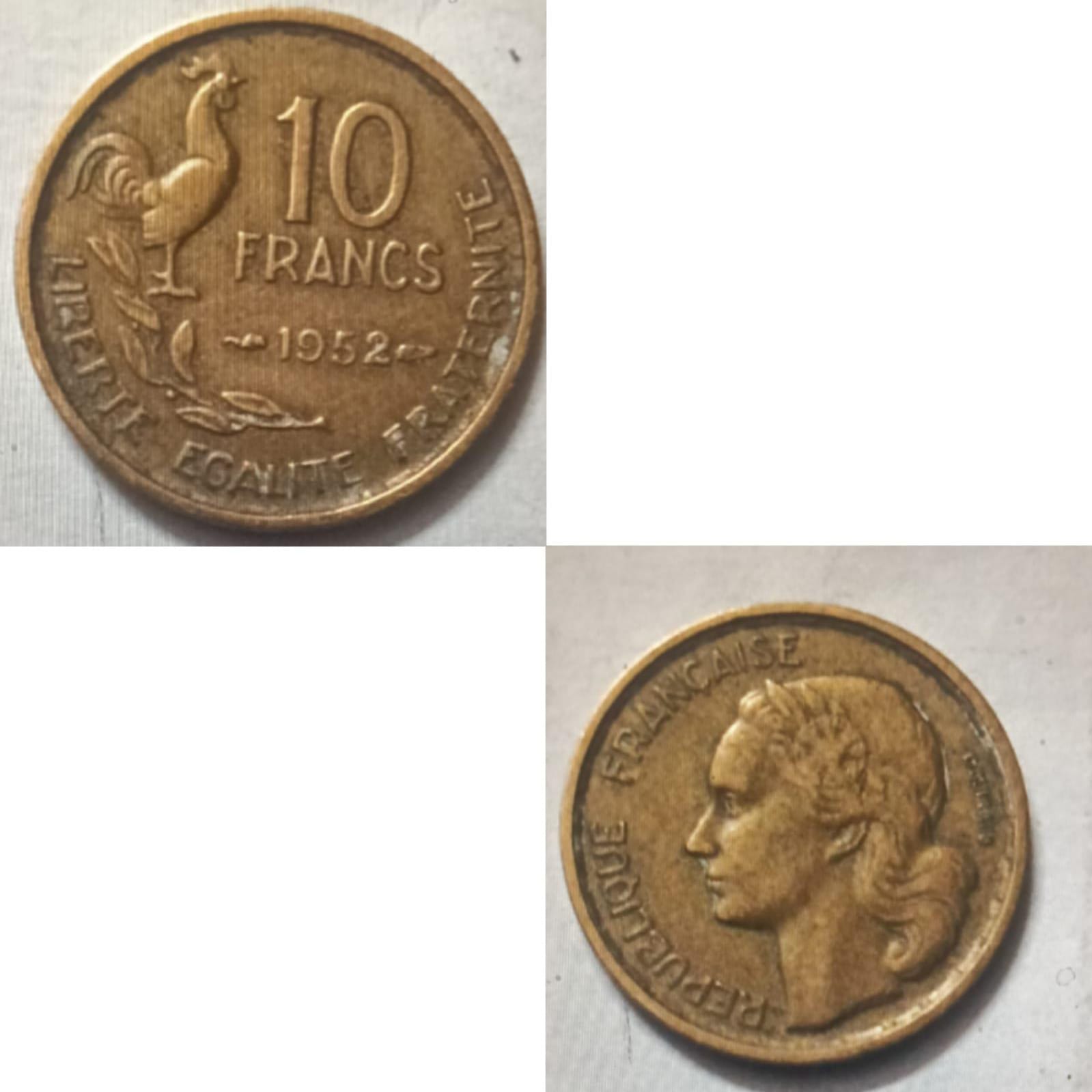10 Centimes 1952 Liberte Egalite Fraternite Used. Collectible numismatic item. Stock image shown.
