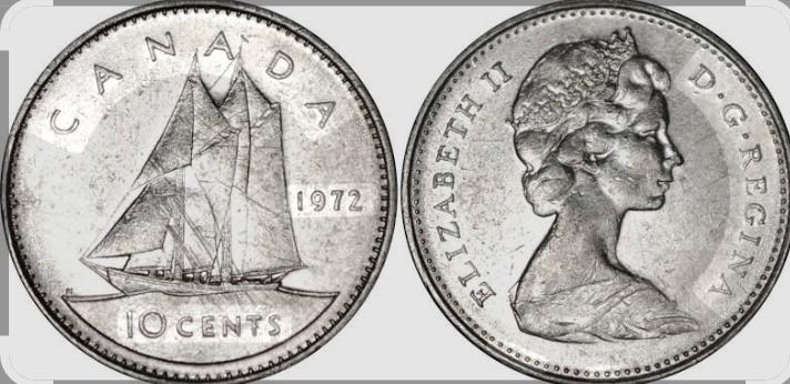 10 Cents Canada 1972 Elizabeth II D.G Regina Used. Collectible numismatic item. Stock image shown.