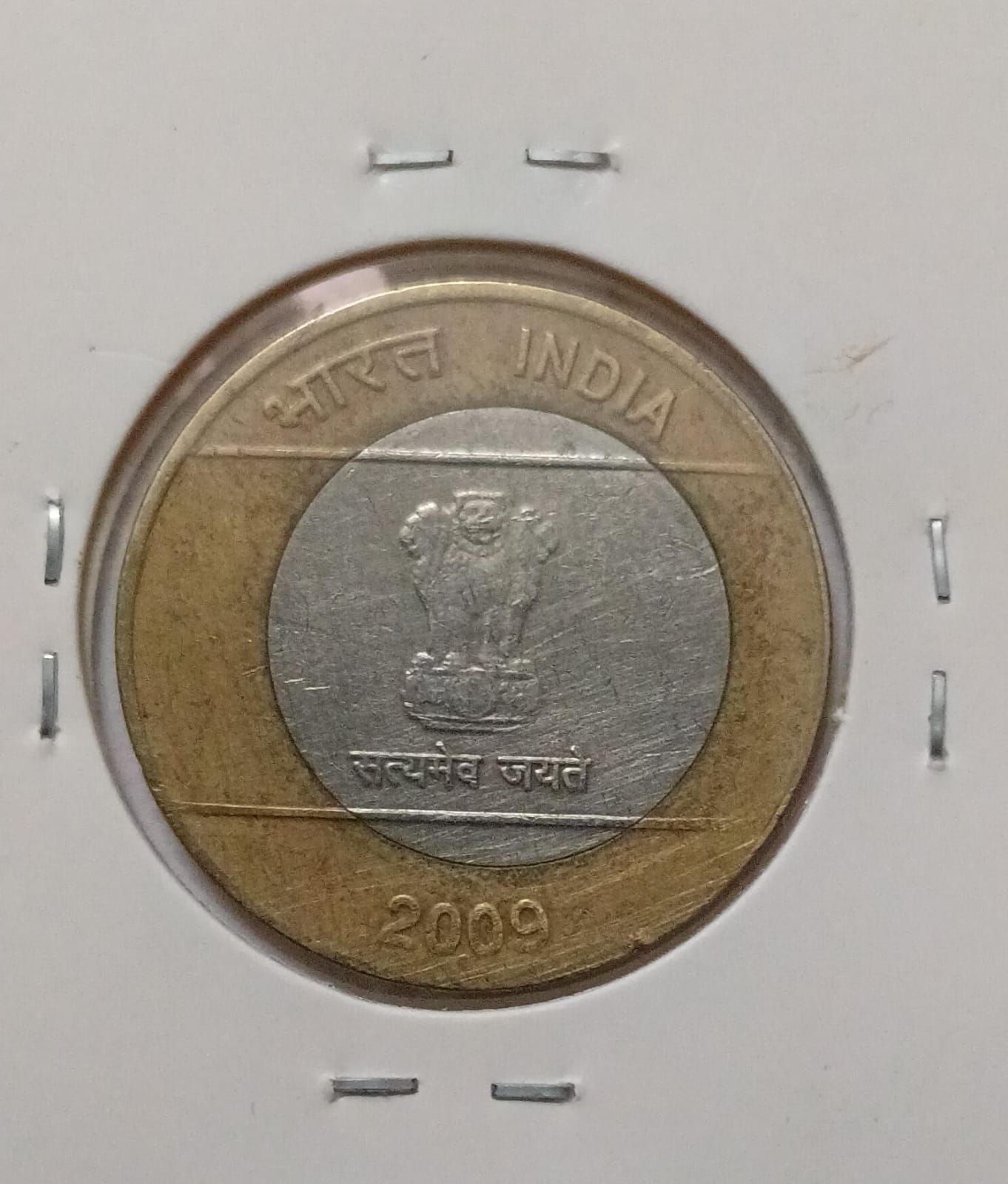 10 RUPEES 2009 OFF CENTRE ERROR COIN USED