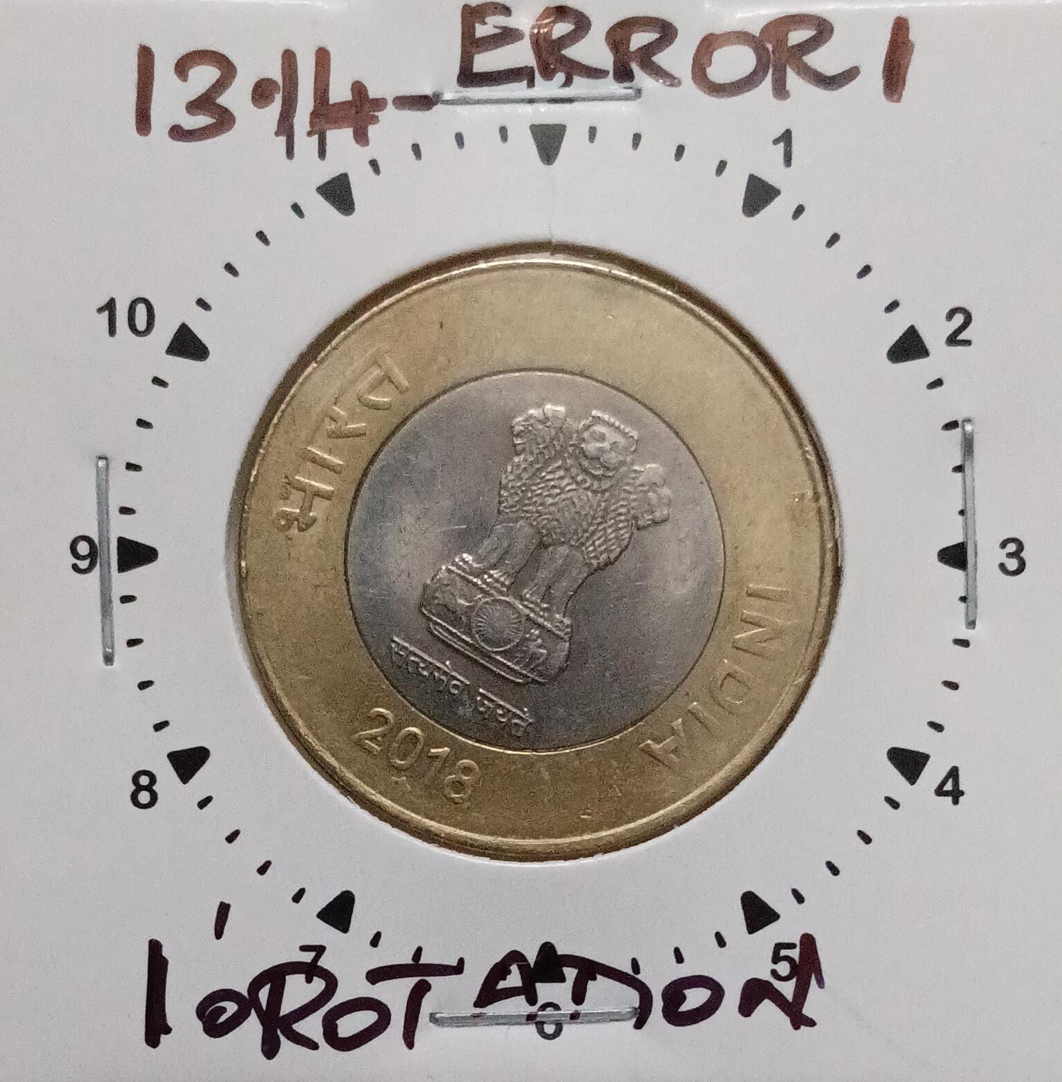 10 RUPEES-2018 1 O’CLOCK ROTATION ERROR COIN USED
