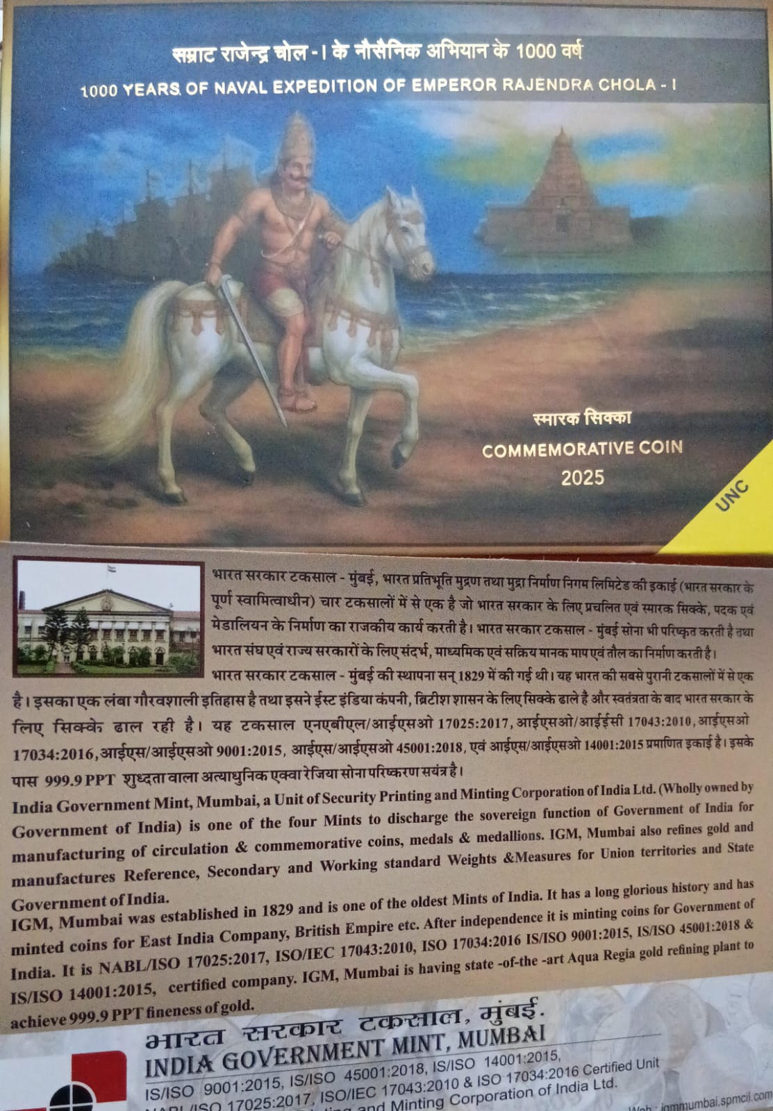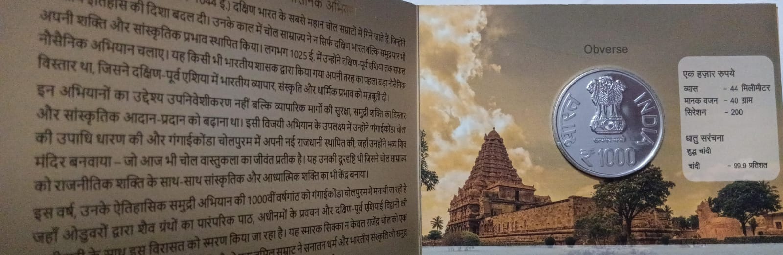 1000 YEARS OF NAVAL EXPEDITION OF EMPEROR RAJENDRA CHOLA-1 COMMEMORATIVE COIN Rs.1000 (UNC) 2025