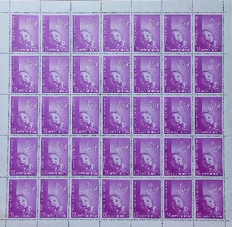 14 Nov. 66 Childrens Day. Childrens Day, Child, Dove, Leaf, Hand, Rs.15P- MNH (Stamp Full Sheets – 35 stamps)