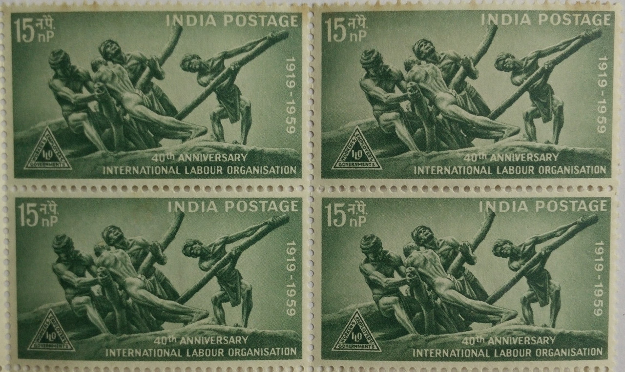 15 Jun. 59 40th Anniversary of International Labor Organization. Anniversary, Labour, Organisation, Statue, The Triumph of Labour, Emblemn, 15 nP.(Hinged Block of 4)