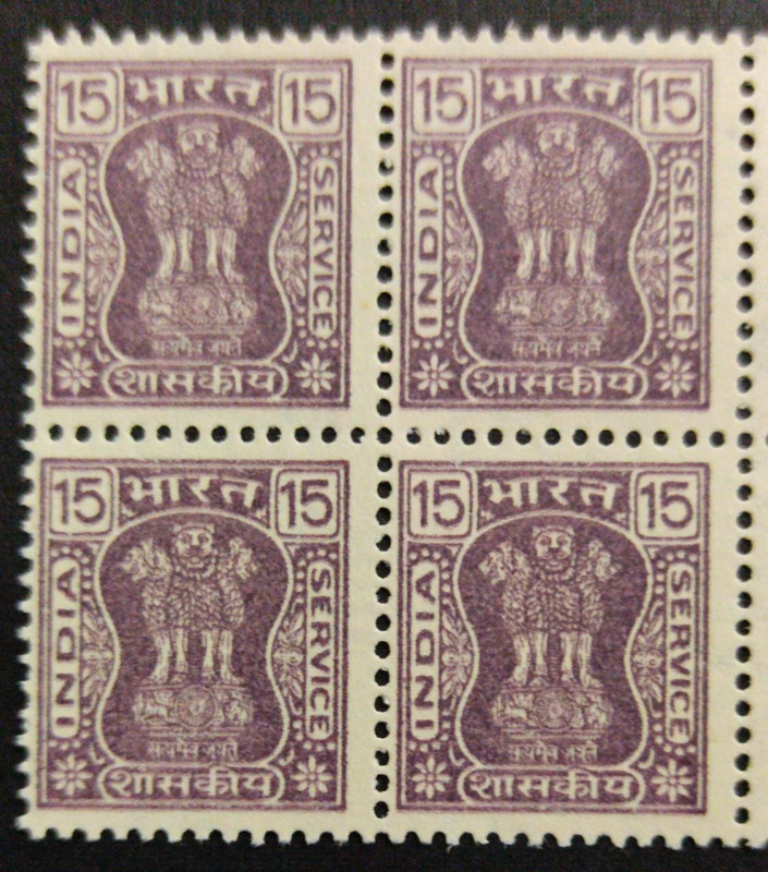 16 Apr 1984-1999 Wmk Ashoka capital Sideways 15 (Blk of 4 stamp)