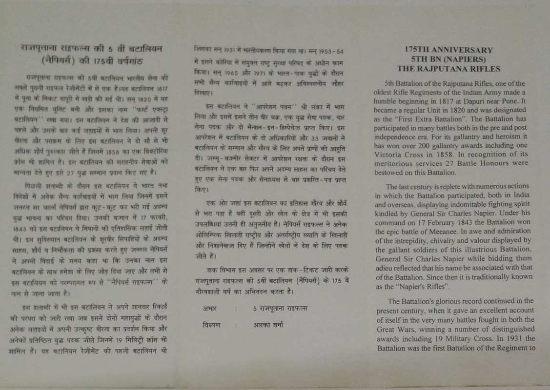 175th Anniv.of 5th Battalion (Napier’s) (BR)