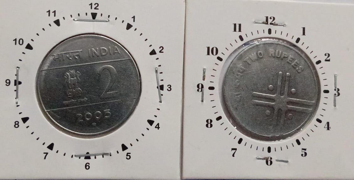 2 RUPEES 2005 HYDERABAD MINT 11 ROTATION ERROR COIN UNC