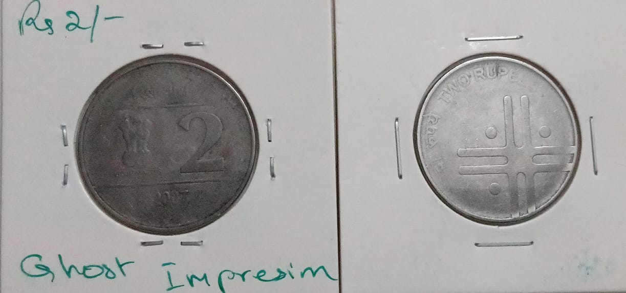 2 RUPEES 2007 KOLKATA MINT GHOST ERROR COIN USED