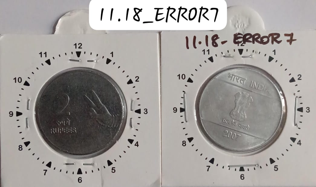2 RUPEES 2007 (MUDRA)BOMBAY MINT 1 O’CLOCK ROTATION ERROR COIN USED