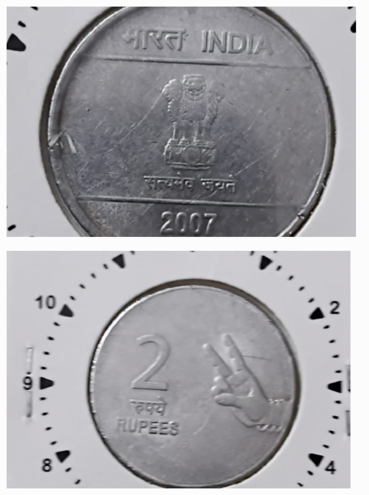 2 RUPEES 2007 (MUDRA)KOLKATA MINT OFF CENTRE ERROR COIN USED