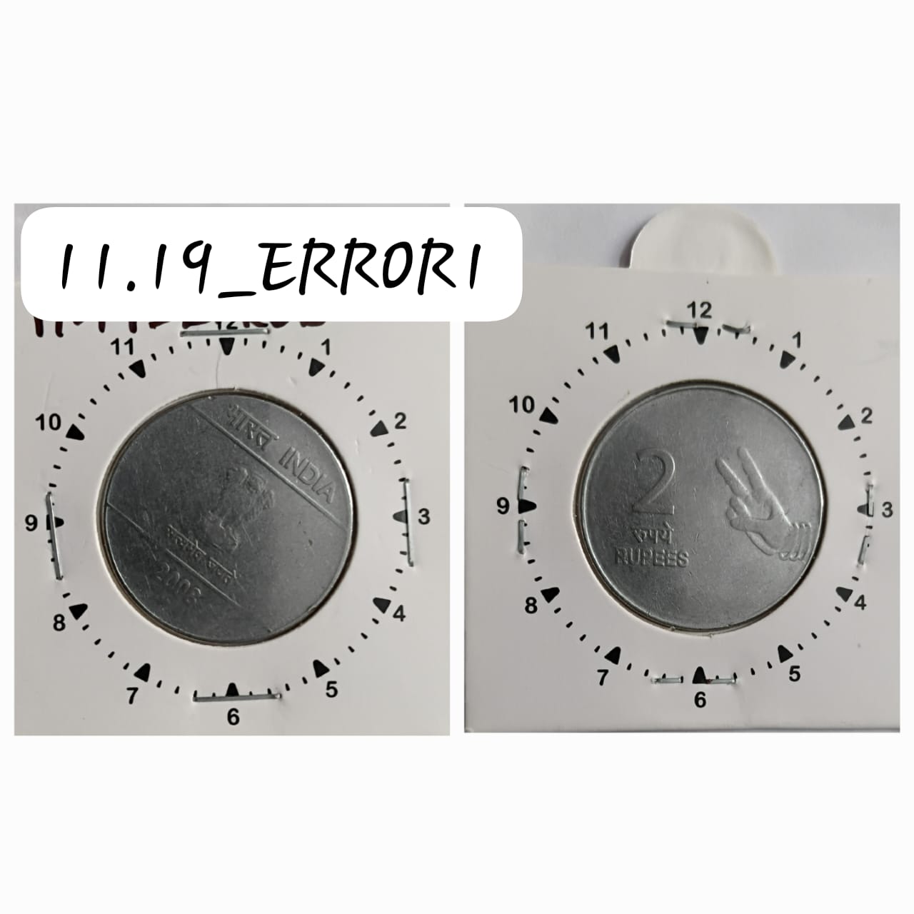 2 RUPEES 2008 (MUDRA)HYDERABAD MINT 1 O’ CLOCK ROTATION ERROR COIN USED