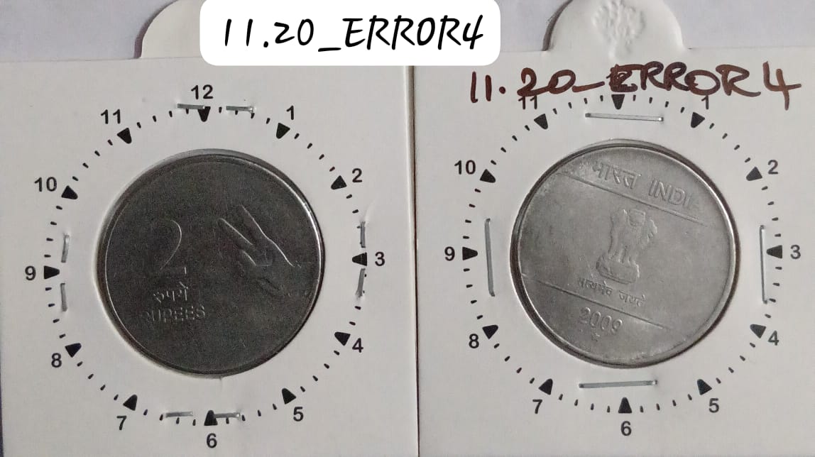 2 RUPEES 2009 (MUDRA)HYDERABAD MINT 11 O’CLOCK ROTATION ERROR COIN USED