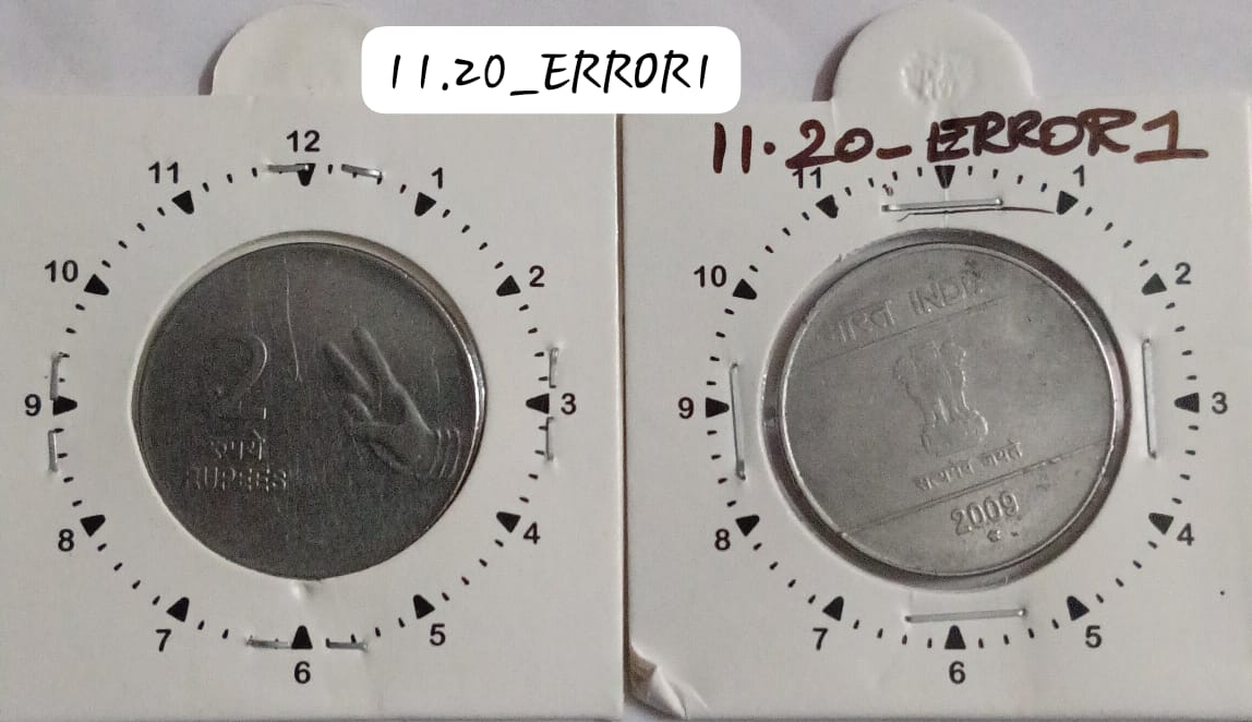 2 RUPEES 2009 (MUDRA)HYDERABAD MINT 11 O’CLOCK ROTATION ERROR COIN USED