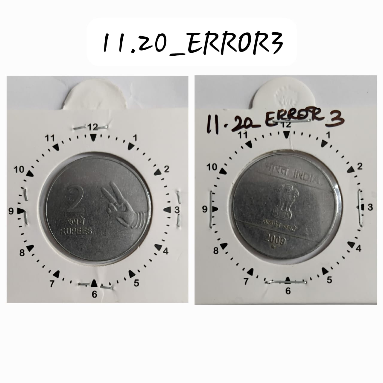 2 RUPEES 2009 (MUDRA)HYDERABAD MINT 12.30 ROTATION ERROR COIN USED