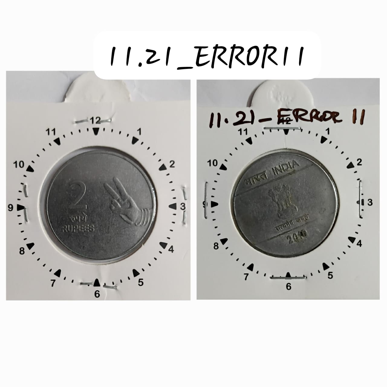 2 RUPEES 2010 (MUDRA)KOLKATA MINT 11 O’CLOCK ROTATION ERROR COIN USED