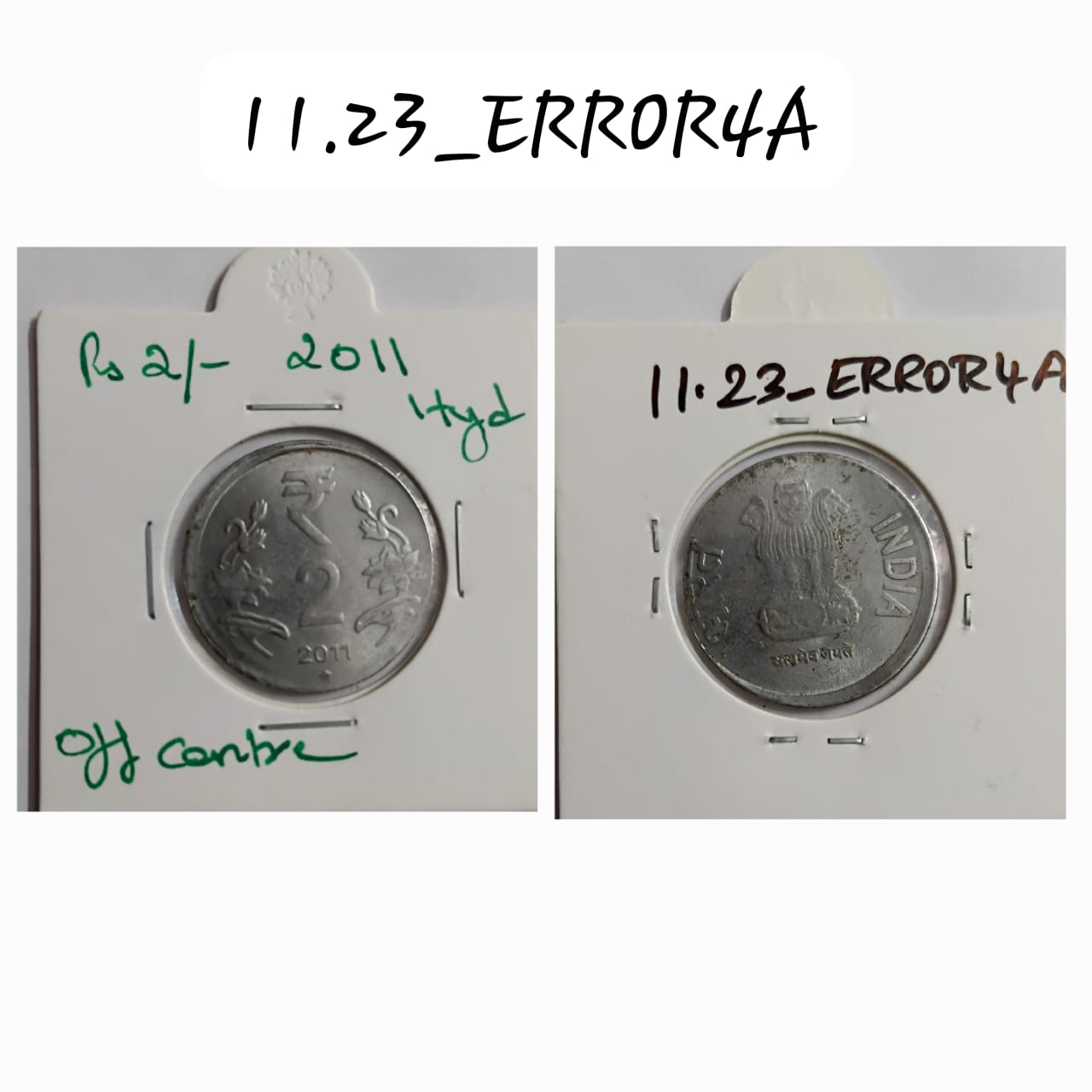 2 RUPEES 2011 HYDERABAD MINT OFF CENTRE ERROR COIN USED