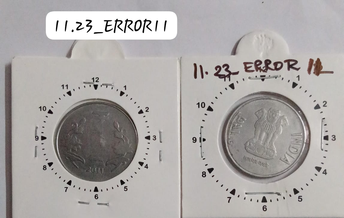 2 RUPEES 2011 KOLKATA MINT 1 O’CLOCK ROTATION ERROR COIN USED