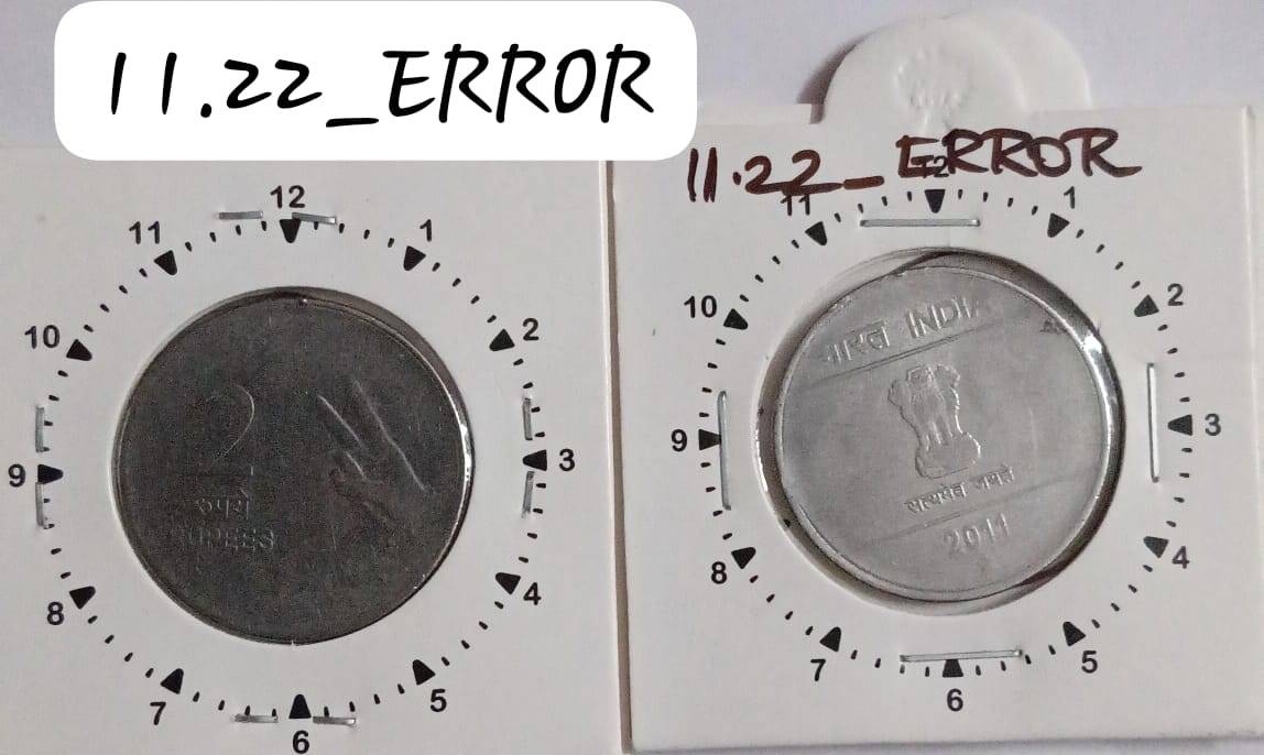 2 RUPEES 2011 (MUDRA)HYDERABAD MINT 11 O’CLOCK ROTATION ERROR COIN USED