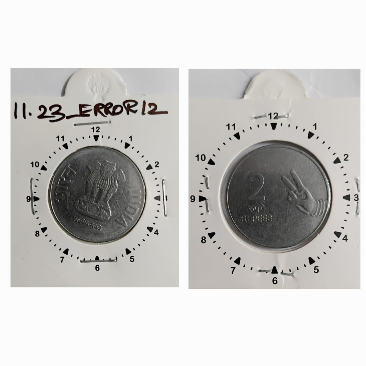 2 RUPEES 2011 NOIDA MINT 1 O’CLOCK ROTATION ERROR COIN UNC