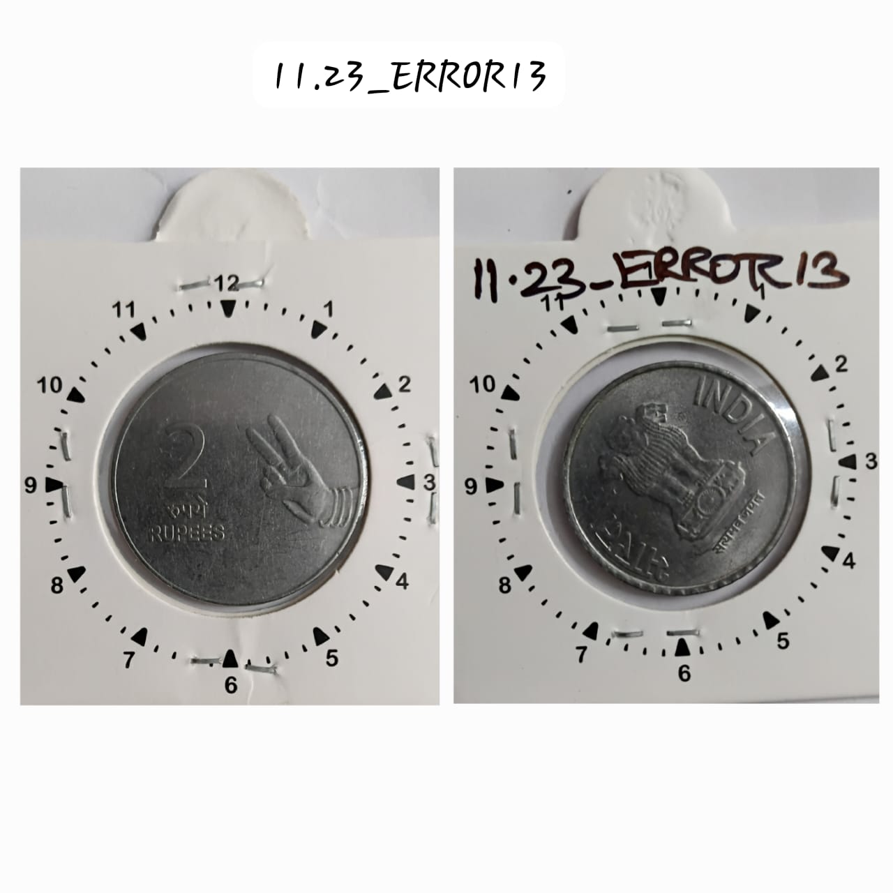 2 RUPEES 2011 NOIDA MINT 10 O’CLOCK ROTATION ERROR COIN UNC