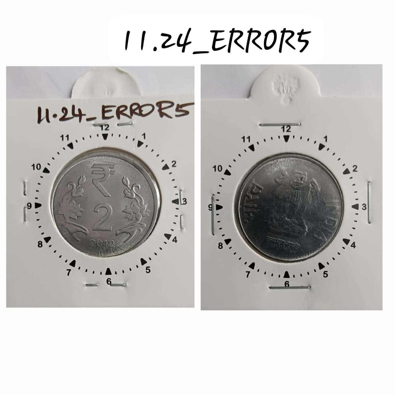 2 RUPEES 2012 HYDERABAD MINT 1 O’CLOCK ROTATION &OFF CENTRE ERROR COIN UNC