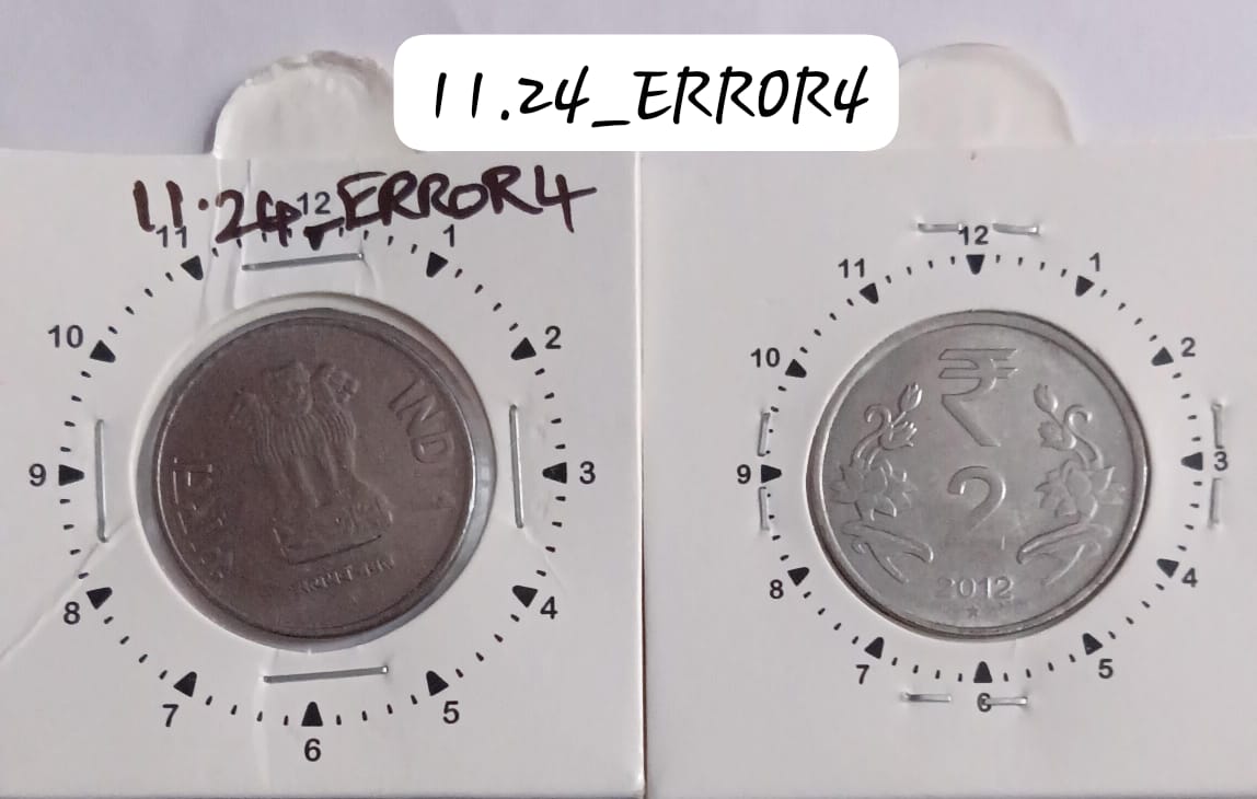 2 RUPEES 2012 HYDERABAD MINT 11 O’CLOCK ROTATION ERROR COIN USED