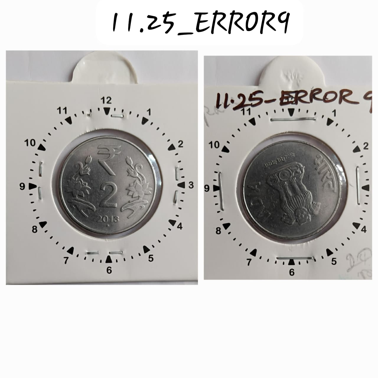 2 RUPEES 2013 NOIDA MINT 5 O’CLOCK ROTATION ERROR COIN USED
