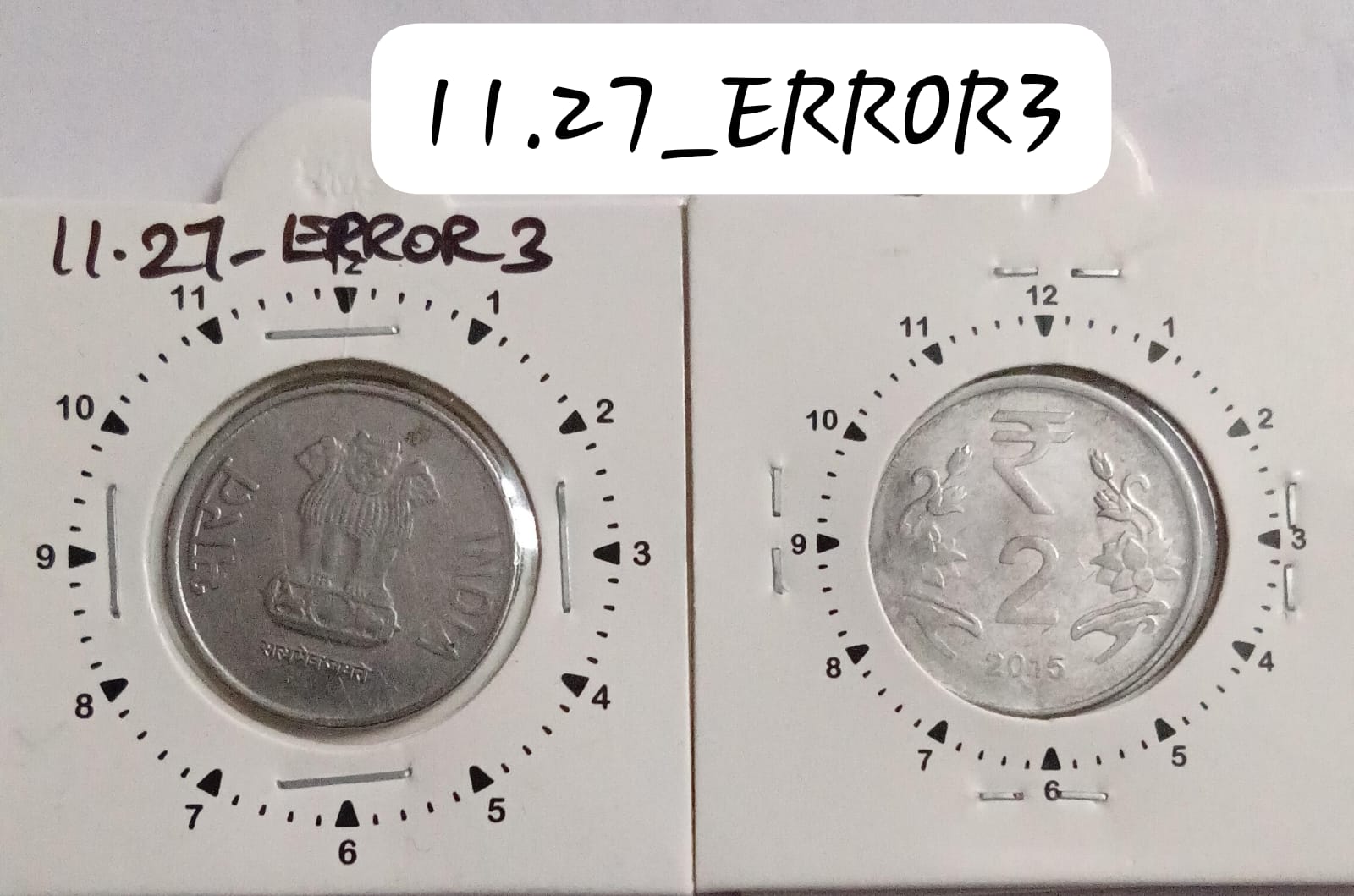 2 RUPEES 2015 HYDERABAD MINT 1 O’CLOCK ROTATION ERROR COIN USED