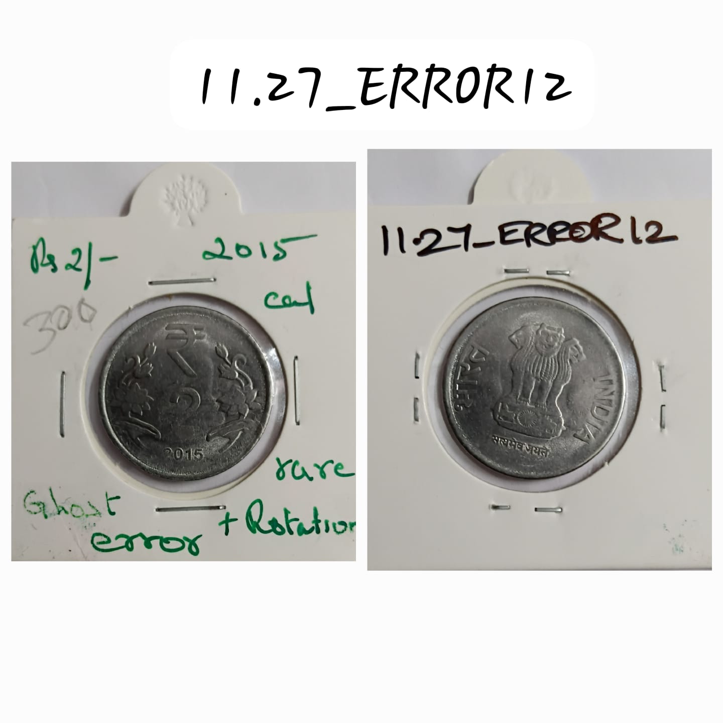 2 RUPEES 2015 KOLKATA MINT GHOST ERROR & 12.30 ROTATION COIN USED