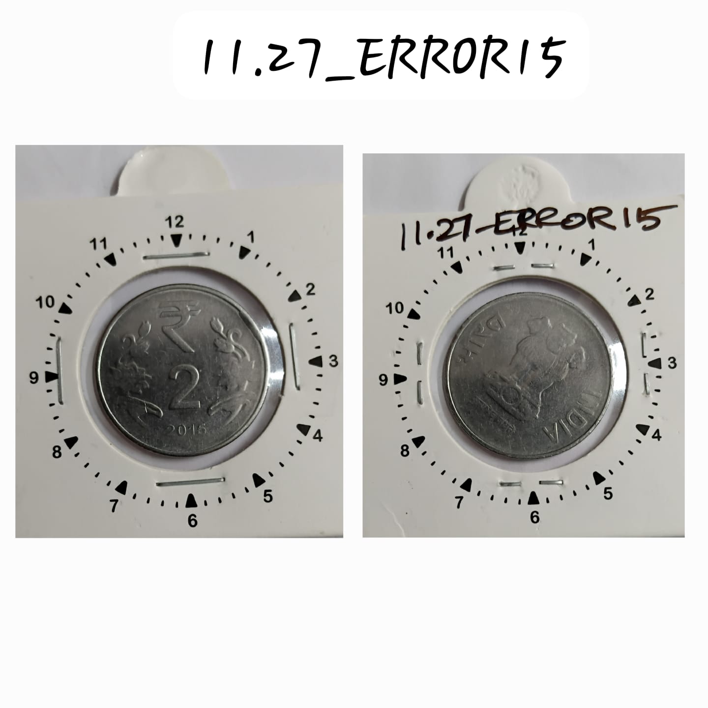 2 RUPEES 2015 NOIDA MINT 1.30 ROTATION ERROR COIN UNC