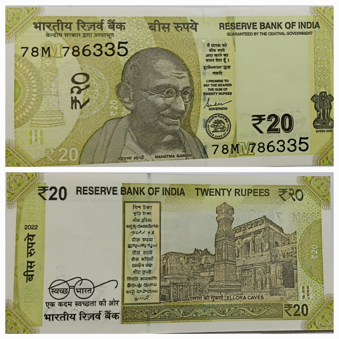 20 Rupees Governor Shakti Kanta Das Star Inset M 2022 UNC 786 SERIES 78 M 786335