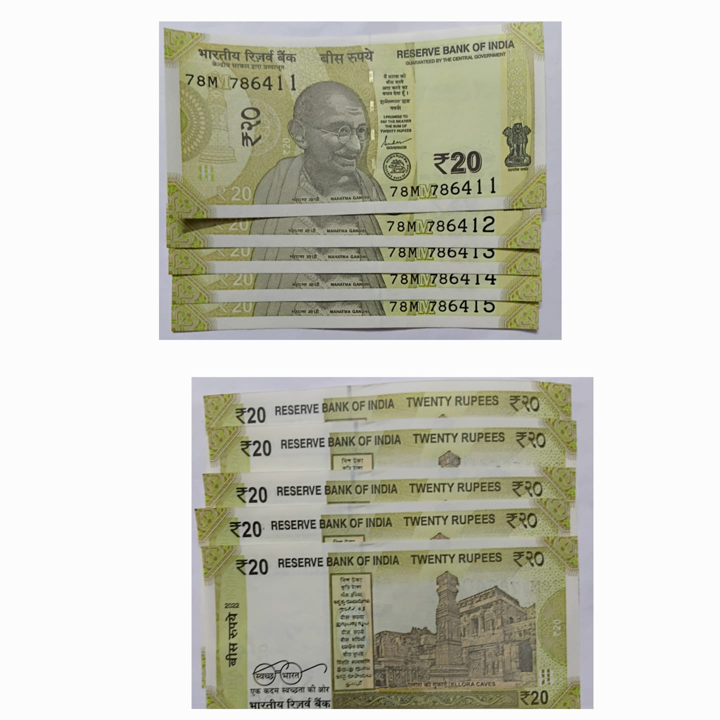 20 Rupees Governor Shakti Kanta Das Star Inset M 2022 UNC 786 SERIES 78 M (786411-786415) 5 NOTES