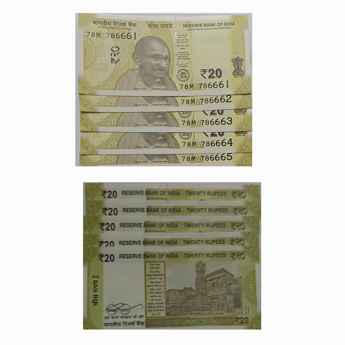 20 Rupees Governor Shakti Kanta Das Star Inset M 2022 UNC 786 SERIES (78 M 786661-78 M 786650)5 NOTES