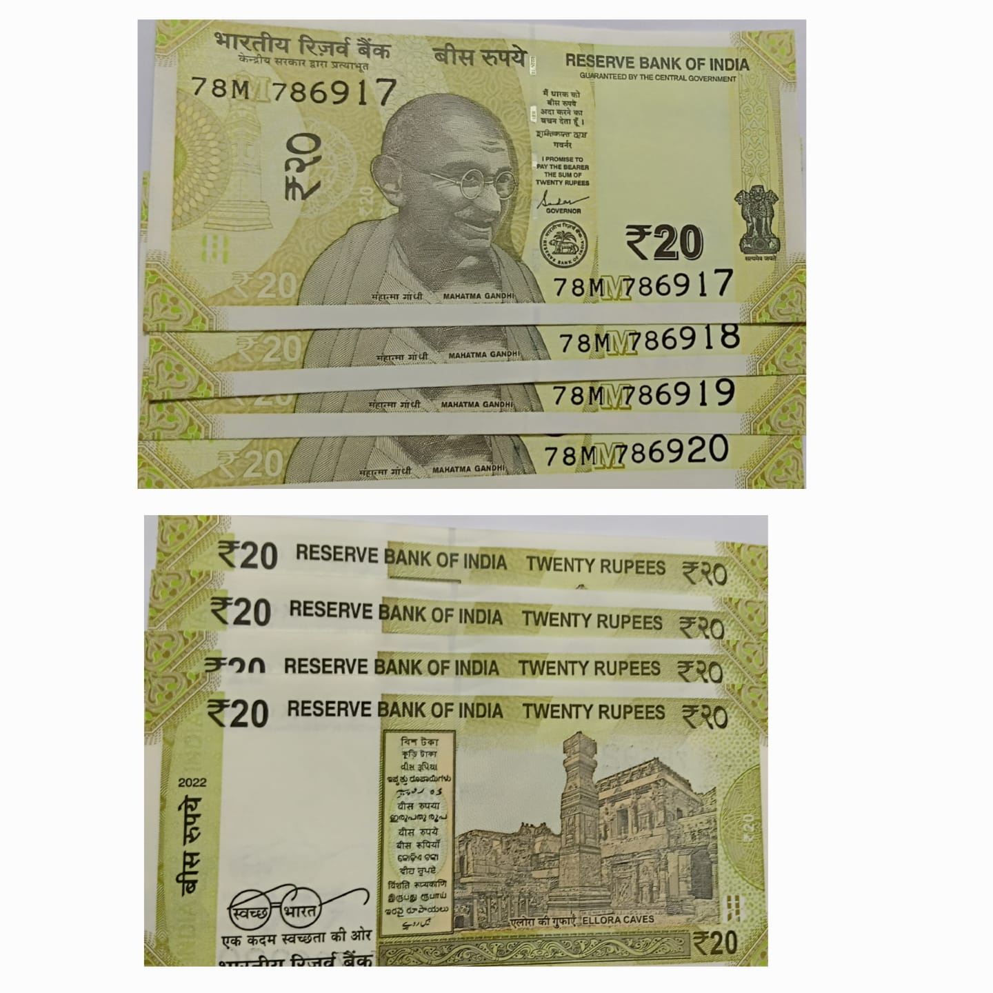 20 Rupees Governor Shakti Kanta Das Star Inset M 2022 UNC 786 SERIES (78 M 786917-78 M 786920) 4 NOTES