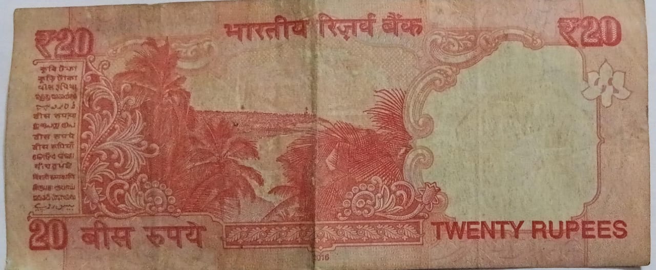20 Rupees Governor Urjit Patel Inset Plain 2016 (Used) 959828