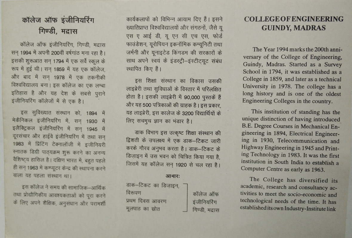 200 Years of College of Engineering,Guindy,Madras. (BR)