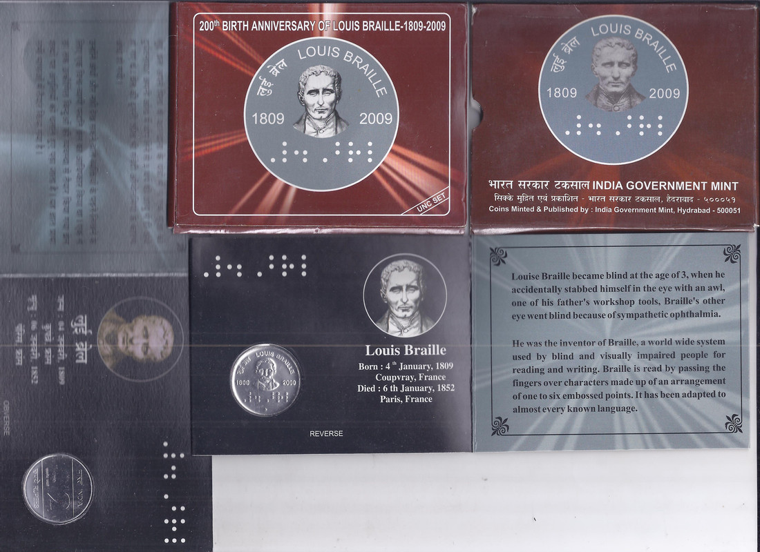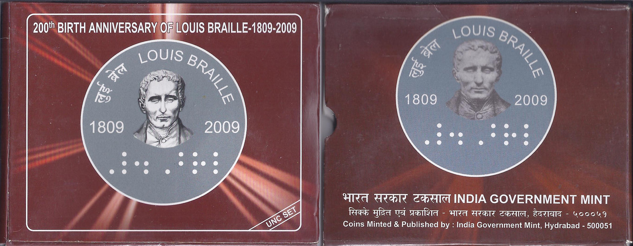 200th Birth Anniversary of Louis Braille 1809-2009 Rs.2 (Hyderabad Mint UNC)