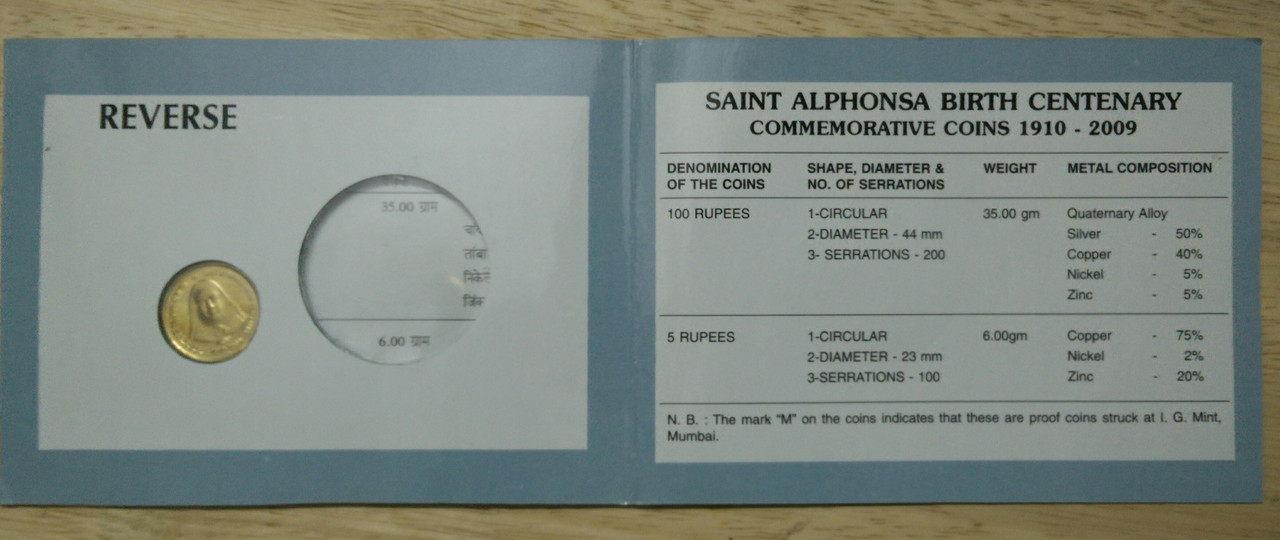 2010 – Saint Alphonsa Birth Centenary Rs.5 only 1 coin (UNC SET)